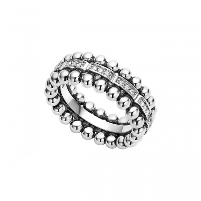 Beautiful beading edges a sparkling line of pave diamonds in this elegant sterling silver band. Style Name: Lagos Caviar Spark Diamond Band Ring. Style Number: 6077816. Available in stores.