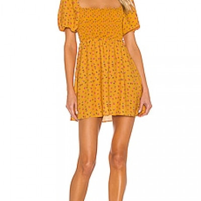 100% poly Unlined Smocked bodice Elastic sleeves Crepe fabric Made in USA Revolve Style No. ELES-WD46 Manufacturer Style No. BLAKE