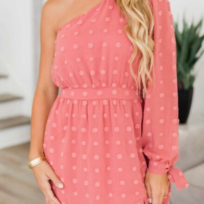 This gorgeous dress is made for date nights all season long! We love the delicate rose pink color paired with a stunning one shoulder silhouette - it's so effortlessly chic! It also features gorgeous swiss dot poms and balloon sleeves for a stylish look! Just add heels and sparkling earrings to complete this elegant look for any occasion! 100% Polyester Hand Wash/ Dry Flat Lined for additional coverage Patterns may vary Materials may have natural variations Colors may vary from different viewing devices.
