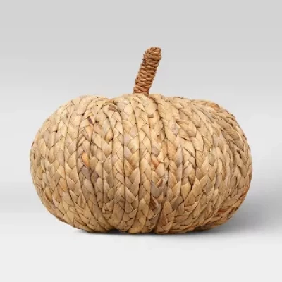 Add natural texture to your seasonal display with this Brown Decorative Raffia Pumpkin Figurine from Thresholdâ„¢. This pumpkin-shaped accent makes a great addition to your seasonal fall decorations. It showcases an allover woven design with raffia texture for natural flair. The neutral brown-colored prop blends with any decor and is suitable for table placement. Set it on a console, shelf or side table along with other props to give a boost of decorative style.