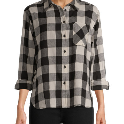 Soft flannel in a timeless plaid and you've got it, your new favorite shirt from Time and Tru. Layer it with a tank or tee for a throw-back look or wear it solo for comfy, everyday style. Long Sleeve Plaid Flannel Shirt for Women from Time and Tru: .Approx. Model Measurements: Height: 5’10â€Â, Waist: 26â€Â, Bust: 33â€Â, .Hips: 36†.Model is wearing size S .Relaxed fit .Button-down collar; button-front closure .100% Cotton .Machine washable .Imported