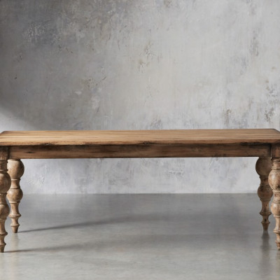 A Dramatic, Handcrafted Statement With Substantial Baluster Legs, Each Rustic Francis Dining Table Is Artisan-Built From Solid Reclaimed Pine. This Stunning, Sustainably Sourced Wood Features Unique Organic Markings And Distinct Variations In Color, Grain, And Textureâ€â€Making Each Individual Piece A True One-Of-A-Kind. Completed Tables Are Constructed Using Traditional Techniques And Carefully Antiqued By Handâ€â€Finished In Natural Tones While Accentuating The Reclaimed Wood’s Unique Features.