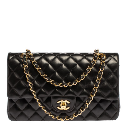 We are in utter awe of this flap bag from Chanel as it is appealing in a surreal way. Exquisitely crafted from leather in their quilt design, it bears their signature label on the leather interior and the iconic CC turn lock on the flap. The piece has gold tone hardware, and a lovely chain link just so you can easily parade it. This Classic flap bag is a coveted piece, so cease the wait and make this luxurious bag yours today.