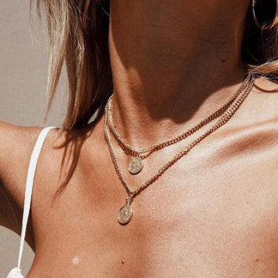 Layered necklace Double tier design Coin charms Gold-toned hardware Lobster clasp fastening Length adjusts from: 37cm - 42cm