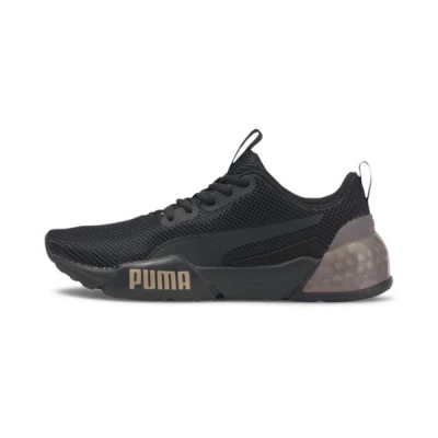 Step to the next level of viz tech with the CELL Vorto. A sizable CELL unit at the heel provides stable cushioning while a sleek upper and rubber outsole provide support and comfort through training. | PUMA CELL Vorto Gleam Womens Sneakers in Black/Rose Gold, Size 6.5
