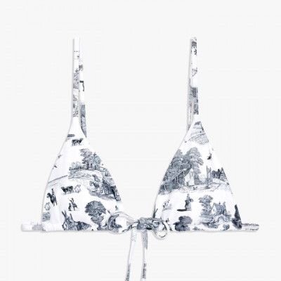 A fresh take on a swim classic, the Triangle Top has a timeless string bikini silhouette with adjustable straps and a tie in front that adjusts to your desired fit. .Classic triangle top .Adjustable slim straps .Adjustable tie front .No padding .85% Nylon 15% Spandex .Hand wash cool water. Do not bleach. Do not tumble dry. Hang dry. Do not iron. FIT Height 5’10.5†/ Bust 33†/ Waist 25†/ Hip 36â€Â. Model wears size small. Runs true to size.