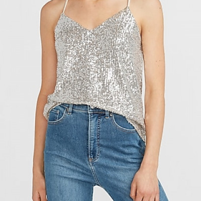 Were all about the stunning shine sequins can bring to a look. This bright and bold cami style steals the spotlight and pairs perfectly with your mini skirts and denim. Womens Camis, Color: Metallic Silver, Size: , SEQUIN CLEAN CAMI:SOFT IVORY:XXS.