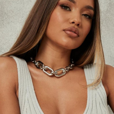 Silver Look Tube Chunky Chain Necklace