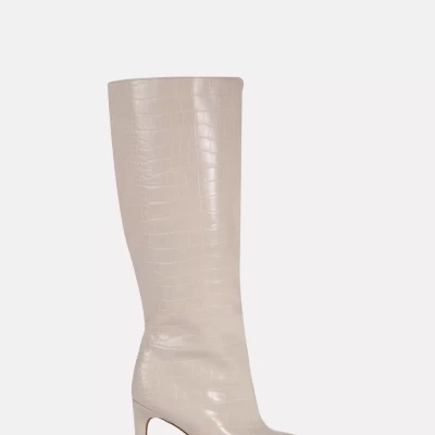Cream Mock Croc Tubular Calf Stiletto Boots