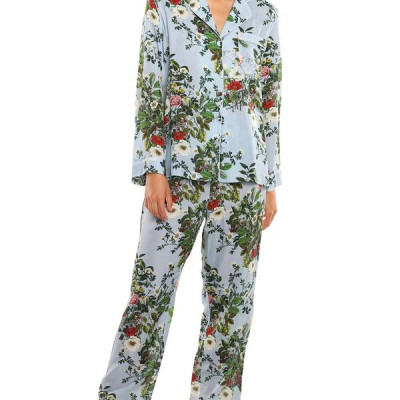 Papinelle's classic full length Pajama Set was destined to be covered in a Karen Walker signature print. These limited edition Love Letter Blue Floral pajamas are made from a blend of silk and cotton. For this print, Karen Walker wanted the feeling of a slightly over-grown garden or meadow, captured beautifully in this delicate pajama set. 30% Silk, 70% Cotton Button front PJ Shirt Pants have half elastic, half drawstring waist Gentle Machine Wash, Line Dry. Follow care instructions provided 67.5cm top length; 71cm inseam; 45.5cm leg opening; 29.5cm front rise; 38cm back rise (size Medium) Our models are a size US 2-4 and wear a Small in these images.