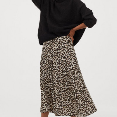 Calf-Length Skirt In Woven Viscose Fabric. High Waist, Pleats At Front For Added Volume, And Concealed Zipper At One Side. Unlined.