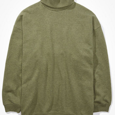 AE Fleece Oversized Turtleneck Sweatshirt Womens Washed Olive