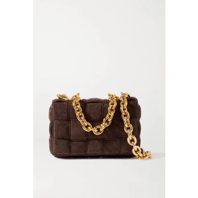 Daniel Lee takes Bottega Venetas signature intrecciato weave and reworks it again - this time using padded strips of leather to create a puffy silhouette. This Cassette shoulder bag unlocks to reveal a spacious interior with a zipped pocket. Match any jewelry to the chunky gold chain strap, which happens to be another new addition for Pre-Fall 20. Wear it with: Prada Jumpsuit, Totme Blazer, Bottega Veneta Sandals. - Chocolate suede - Clasp-fastening front flap - Designer color: Fondente - C