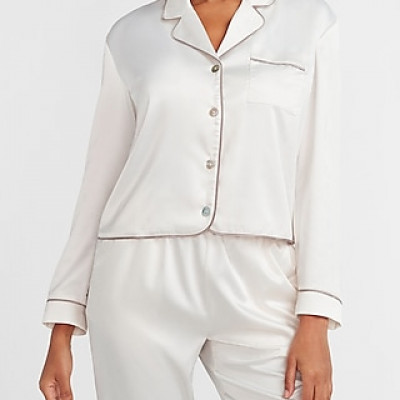 Luxuriously soft and smooth, this silky pajama shirt promises comfort all night long. Pair with the matching bottoms for a complete set. Womens Tops, Color: White, Size: XS, PJ LS SATIN TOP:CHARCOAL HEATHER:XXS.