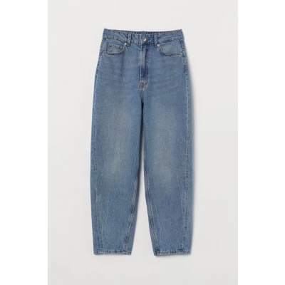 5-pocket, ankle-length jeans in washed denim. Slightly looser fit, extra-high waist, and zip fly with button. Straight legs with vertical seams at back.