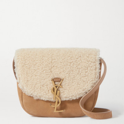 Shearling had a huge influence on the Fall 20 runways, including at SAINT LAURENT, who updated all of its accessories in the fuzzy fabric. Made in Italy from tan suede, this Kate shoulder bag has a structured saddle shape and adjustable strap, so you can personalize where it sits. Match the brands distinctive gold YSL plaque to your jewelry. Wear it with: SAINT LAURENT Cardigan, SAINT LAURENT Tank, SAINT LAURENT Shorts, SAINT LAURENT Slides. - Tan suede, ivory shearling - Snap-fastening fr