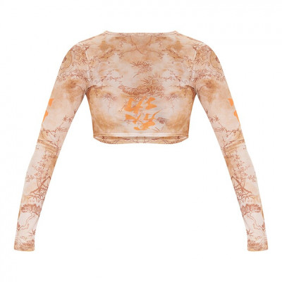 Give Your Look A Serious Edge With This Crop Top. Featuring An Orange Mesh Material With A Contrasting Print And A Cropped Length. Style This With Cargo Bottoms And Barely-There Heels To Complete The Look.
