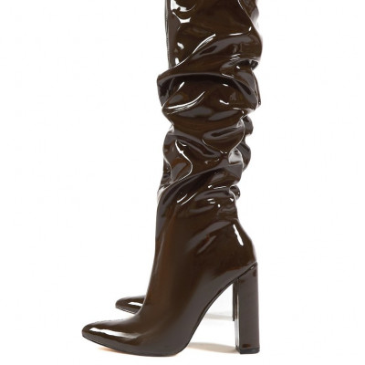 Get ready for knee high boot season in these ultimate boots! Yours features a patent finish with a ruching design and block heel. We cannot get enough of these! Heel Height: 4.5" Fabric Composition: Synthetic. Manmade PU.