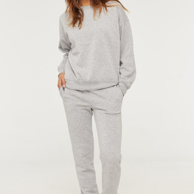 Exclusive piece from our Basic collection. Fleece-lined joggers. Smocked elastic waist with drawstring. Side pockets. 65% polyester, 35% rayon. Model is wearing size S.