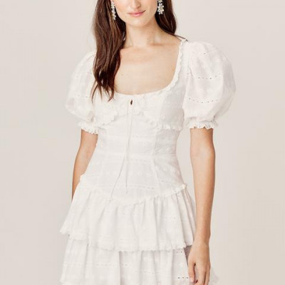 Fresh Cotton Embroidered Eyelet Mini Dress Featuring A Figure-Flattering Bodice And Tiered Skirt. Pretty Puff Sleeves, Peekaboo Keyhole Back. Scallop Eyelet Trim. • Bodice Paneling • Tiered Mini Skirt • Matching Scallop Eyelet Trim • Puff Sleeves • Cutouts At Center Front And Center Back • Back Button And Zipper Closure • Fully Lined