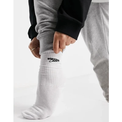 Weekend Collective Calf Length Rib Sock With Embroidered Logo