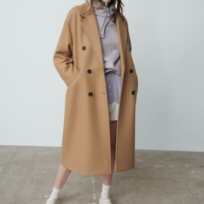 LIGHT CAMEL - 2170/744 Coat made of wool blend fabric. Lapel collar and long sleeves with dropped shoulders. Flap pockets at front. Interior lining. Front double breasted button closure.