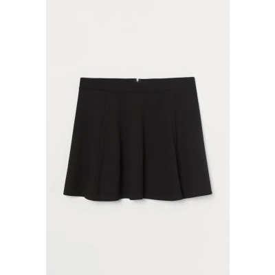 Short skater skirt in thick jersey with an elasticized waistband. Visible zipper at back. Unlined.