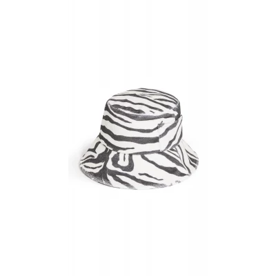 Fabric: Terry cloth cottonSlouchy bucket hatZebra print Small side pocketShell: 100% cottonSpot cleanImported, China Measurements Brim: 3.25in / 8cm Crown: 4in / 10cm Circumference S/M: 22in / 56cm M/L: 22.75in / 58cm