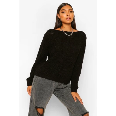 Womens Tall Knit Detail Sweater - black - S/M - Tall Knit Detail Sweater