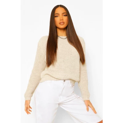 Womens Tall Knit Detail Sweater - cream - S/M - Tall Knit Detail Sweater