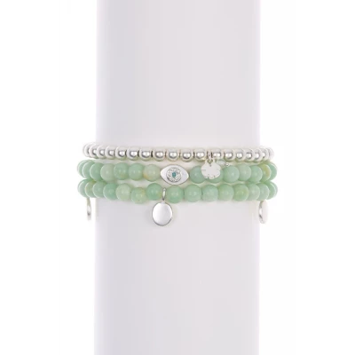 Set the mood by wearing this evil eye bracelet in silver-tone. Silver-tone evil eye bracelet. Approx. 2.25 diameter. Imported