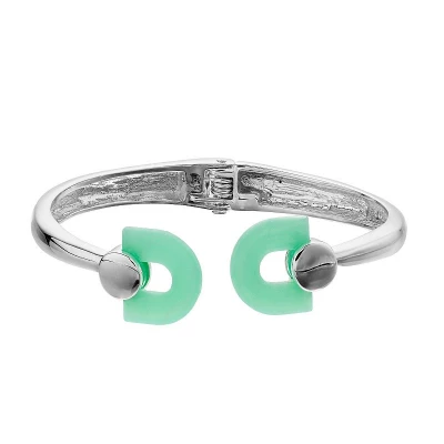 Glam up your wrist when you don this eye-catching cuff bracelet from Nine West. Glam up your wrist when you don this eye-catching cuff bracelet from Nine West. BRACELET DETAILS 7.75 in. Hinged Silver tone Nickel safe PIN DETAILS Resin Size: One Size. Color: Green. Gender: female. Age Group: adult.