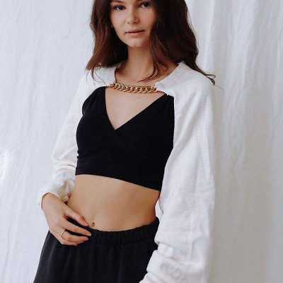 This Piece Is Both Cozy & Lightweight, Covering Your Arms But Featuring An Open Back. Paired With A Cool Chain Detail To Finish, What's More To Love? Also Comes In Black. • 60% Acrylic / 40% Cotton • Gentle Hand Wash Cold Separately • Do Not Bleach / Warm Iron • Line Dry In Shade