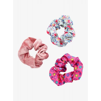 Time for stargazing with Celeste? Make sure your hair looks cute before you go! This set of scrunchies from Animal Crossing: New Horizons includes one each of a pink velvet, a pink printed with different colored star fragments and a blue printed with Celests face, Stargazer and star fragments.