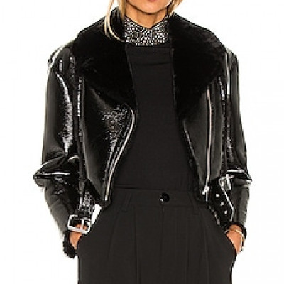 .Self 1: 100% polyurethane Self 2: 100% poly Lining: 100% cotton .Spot clean only .Asymmetrical front zipper closure .Zippered pockets .Belted hem .Faux leather fabric with faux fur collar .Imported .Revolve Style No. NBDR-WO50 .Manufacturer Style No. nbow55 f20
