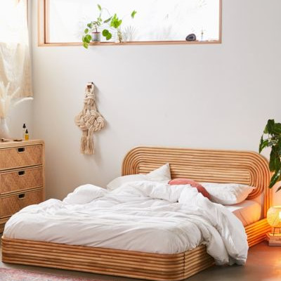 Details Product Sku: 49422611; Color Code: 111 With a ‘70s-inspired boho look, this bed frame from our UO-exclusive Ria collection features a looped rattan construction with a graphic, linear design. In a natural finish with a curving silhouette featuring rounded corners at headboard and around framed base. Finished with slatted base for mattress. 2 people recommended for assembly. Content + Care - Assembly required - instructions + hardware included - Rattan, mahogany wood - Wipe clean - Imported Size Queen - Dimensions: 82.87â€Âl x 64.17â€Âw x 32.48â€Âh - Mattress space dimensions: 81â€Âl x 62.13â€Âw - Headboard weight: 23.81 lbs - Footboard weight: 19.4 lbs - Base weight: 74.3 lbs Ships in 3 packages - Shipping package 1 dimensions: 66.75â€Âl x 34.65â€Âw x 4.72â€Âh x 65.92â€Âdiagonal - Shipping package 1 weight: 36.16 lbs - Shipping package 2 dimensions: 66.14â€Âl x 10.63â€Âw x 8.66â€Âh x 66.99â€Âdiagonal - Shipping package 2 weight: 24.69 lbs - Shipping package 3 dimensions: 78.35â€Âl x 13.58â€Âw x 6.3â€Âh - Shipping package 3 weight: 81.13 lbs