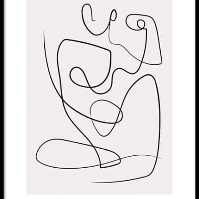 BODY LINE ART – LINE ART WITH ABSTRACT BODY, DRAWN IN BLACK ON A BEIGE BACKGROUND Abstract line art illustration of a body in black on a beige background, with text at the top and bottom. If you want to make sure your home stays on top of trends, line art is a must have! Pair this print with Abstract Figures No2 or Abstract Figures No3 for a perfect pair. The poster is printed with a white border that nicely frames the design. 12694-4 Frame not included
