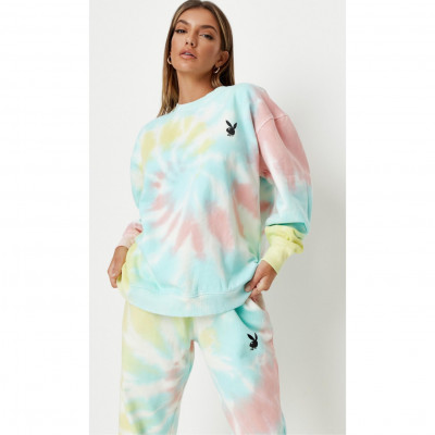 Missguided - Playboy x Missguided Pastel Tie Dye Oversized Crew Neck Sweatshirt