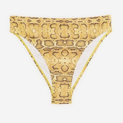 'Cause Being Complacement, Never Makes Hiss-Tory. These Bikini Bottoms Feature A High-Waisted, High-Leg Silhouette, And Snake Print Throughout.
