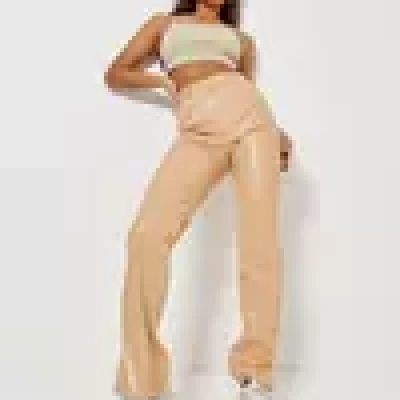Faux Leather Split Hem Trousers With Belt Loops And Button Fastening. There May Be A Chemical Smell After Opening Me Due To The Type Of Fabric Used, Don’t Worry This Smell Will Fade If Left To Air Or If Cleaned Following My Washcare Instructions. Regular Fit Ankle Grazer - Sits On The Ankle Bone Coating: 100% Polyurethane Back: 100% Cotton Pilar Wears A Uk Size 8 / Eu Size 36 / Us Size 4 And Her Height Is 5'9"