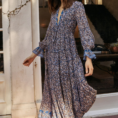 Billowy Vintage Floral Print Maxi Dress With Loose Sleeves Puffed In At The Wrist And Waist To Add To Its Romantic Charm. • Vintage Floral • Shell: 95% Viscose 5% Lurex • Lining: 100% Polyester • Partially Lined • No Stretch • Dry Clean Only • Imported