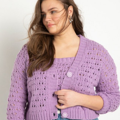 • Crop Sweater Cardigan • Close Fit • Front Button Down Placket • Novelty Yarn • Hits At Waist