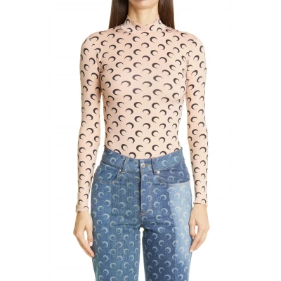 An allover crescent-moon print brings signature Marine Serre style to this mock-neck top cut for a tight, sleek fit. Style Name: Marine Serre Fitted Moon Print Mock Neck Top. Style Number: 6071919.