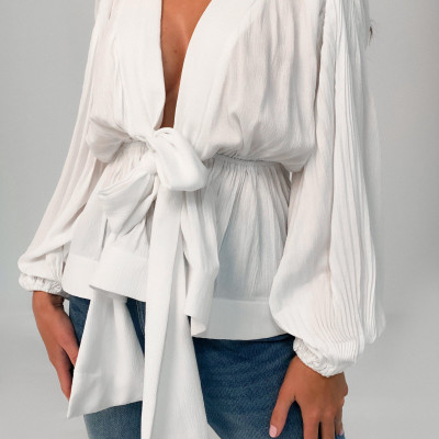 A Cheesecloth Blouse With Plunge Neck And Flippy Structured Hem Detail. Regular Fit Mid Length - Sits At The Hips 95% Viscose 5% Elastane