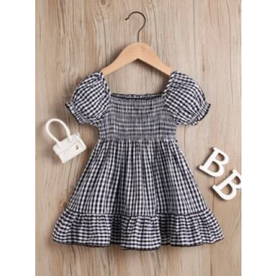 Black and White Cute Short Sleeve Cotton Gingham A Line Non-Stretch Summer Toddler Girl Dresses, size features are:Bust: ,Length: Short ,Sleeve Length:Short Sleeve