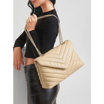 Apricot PU Leather Chevron ShoulderToteBag Women Shoulder Bags, size features are:Bust: ,Length: ,Sleeve Length: