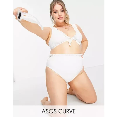 Curve Mix And Match Broderie High Waist Bikini Bottom