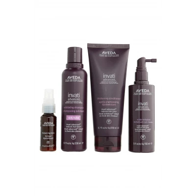 What it is: A three-step advanced hair care system to cleanse, condition and strengthen hair, plus a travel-size Thickening Tonic. Set includes:- invati Advanced Exfoliating Shampoo Rich (6.7 oz.): a shampoo that gently exfoliates, cleanses and renews the scalp with wintergreen-derived salicylic acid, removing pore-clogging buildup- invati Advanced Thickening Conditioner (6.7 oz.): a conditioner that instantly thickens hair, with fullness that