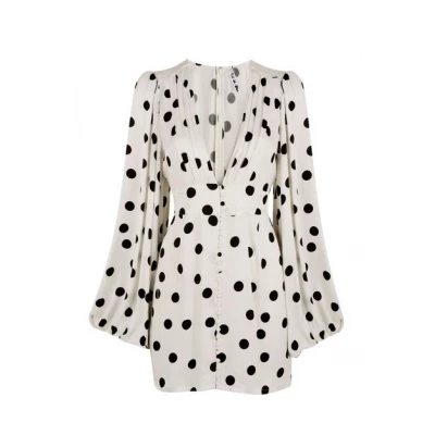 There’s A Touch Of Retro Glamour About The Black On White Spots Of The Perla. The Plunging Neckline And Beautiful Button-Up Front Perfectly Accentuate Your Waist; The Voluminous Sleeves Add Drama. Polka Dot Print Voluminous Sleeves Elasticated Cuffs Button Front Detail Zip Fastening