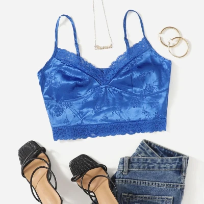 Royal Blue Casual Polyester Plain Cami Non-Stretch Summer Women Tank Tops & Camis, size features are:Bust: ,Length: Crop ,Sleeve Length: